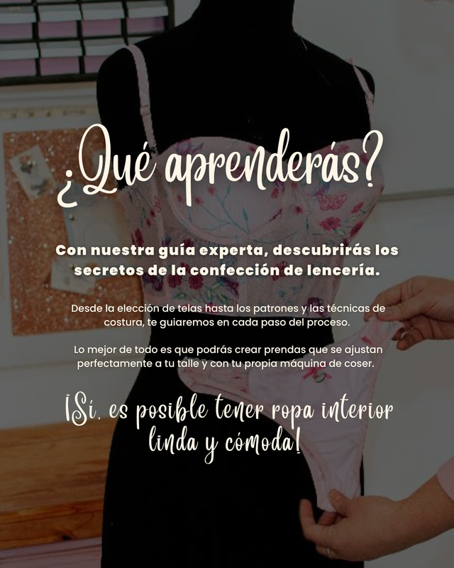 Clase a clase aprenderás todo lo que tenés que saber para confeccionar tu propia ropa interior. Desde la moldería, el corte de la tela y las técnicas de costura hasta los diferentes talles hasta el 10!!